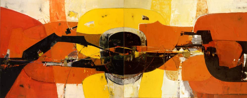 La figuration est désormais très loin, l’artiste est dans la matière-couleur, qu’il allège progressivement l’empâtement fait place à des surfaces plus fines, il y intègre parfois de la cendre, et deux éléments s’affirment, un peu par hasard : rarement des papiers de journal, qui viennent se coller sur la toile lors des diverses manipulations ; et surtout, de façon presque obsessionnelle, le cercle, apparu par l’effet inattendu d’un pot posé sur une toile, et qui va devenir un signe d’identification.